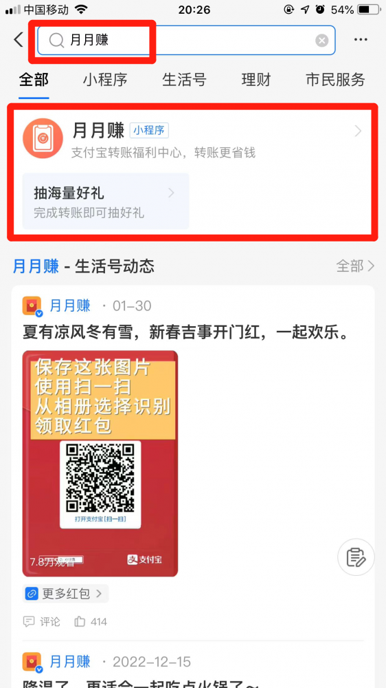 支付宝首页搜索【月月赚】
