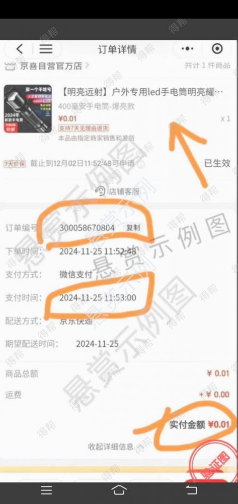 订单截图-支付时间一商品价格必须0.01(禁止退单否则举报追款并封号如下图示)遇到当天活动上限O点后再做。
