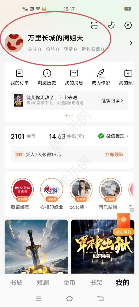 个人页截图(新用户连续签到7天得15元可自提。别错过哦)