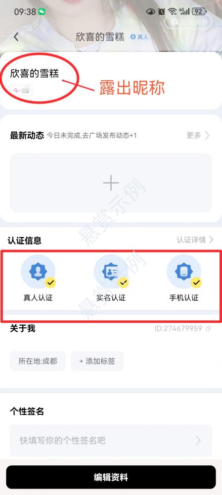 登录后,点击头像完成实名认证后 ,昵称截图。(助力记录以后台为准,显示重复注册为老用户不通过)。