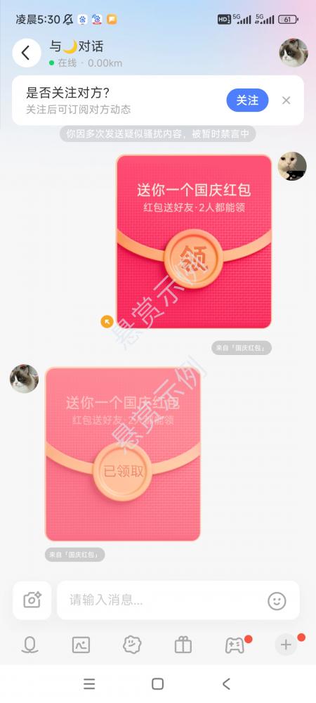 给我发完信息 等我回你信息之后点开首页最上面的国庆红包找到我的头像发送(我一直都在)