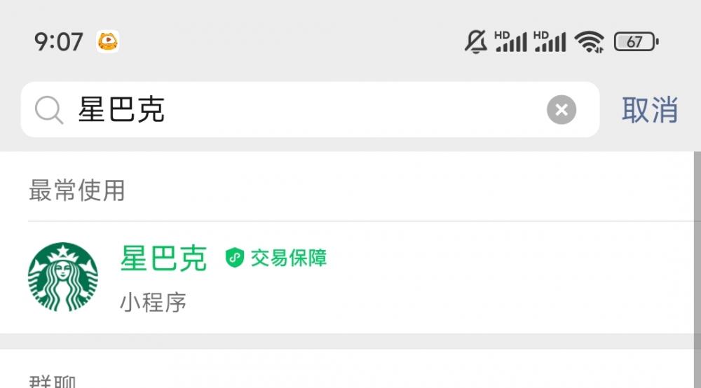 领完8元券后 微信首页搜索星巴克小程序用订券手机号进去登录卡券进去