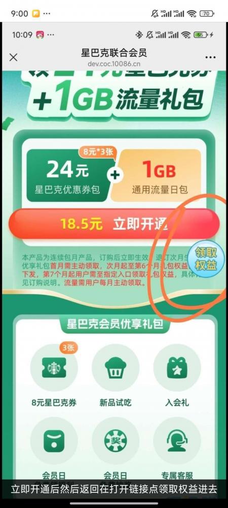 立即开通后然后返回在打开链接点领取权益进去(提交用过的直接举报)