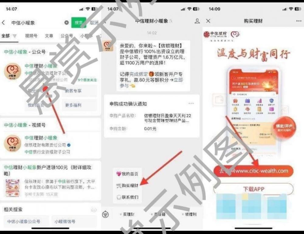 微信搜索 【中信理财小暖象】公众号,购买理财,点去官网申购0.01元
