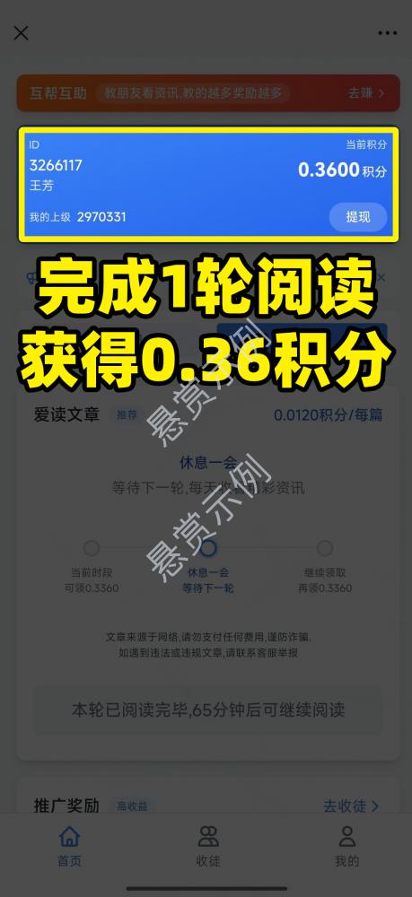 完成1轮阅读 获得0.36积分 截图 (限制注册时间须和报名时间为同一天 不是的不合格)