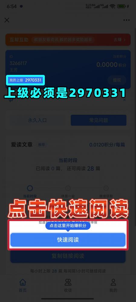 点击 快速阅读 去完成1轮阅读即可 上级必须是2970331