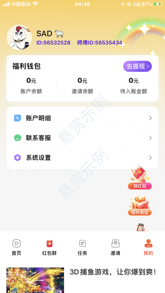 新用户领红包看广告一个包0.5元,邀请人必须填写:56532528