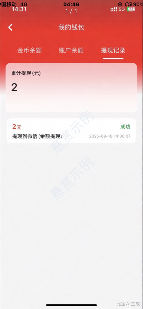 完成最低一元或以上提现截图