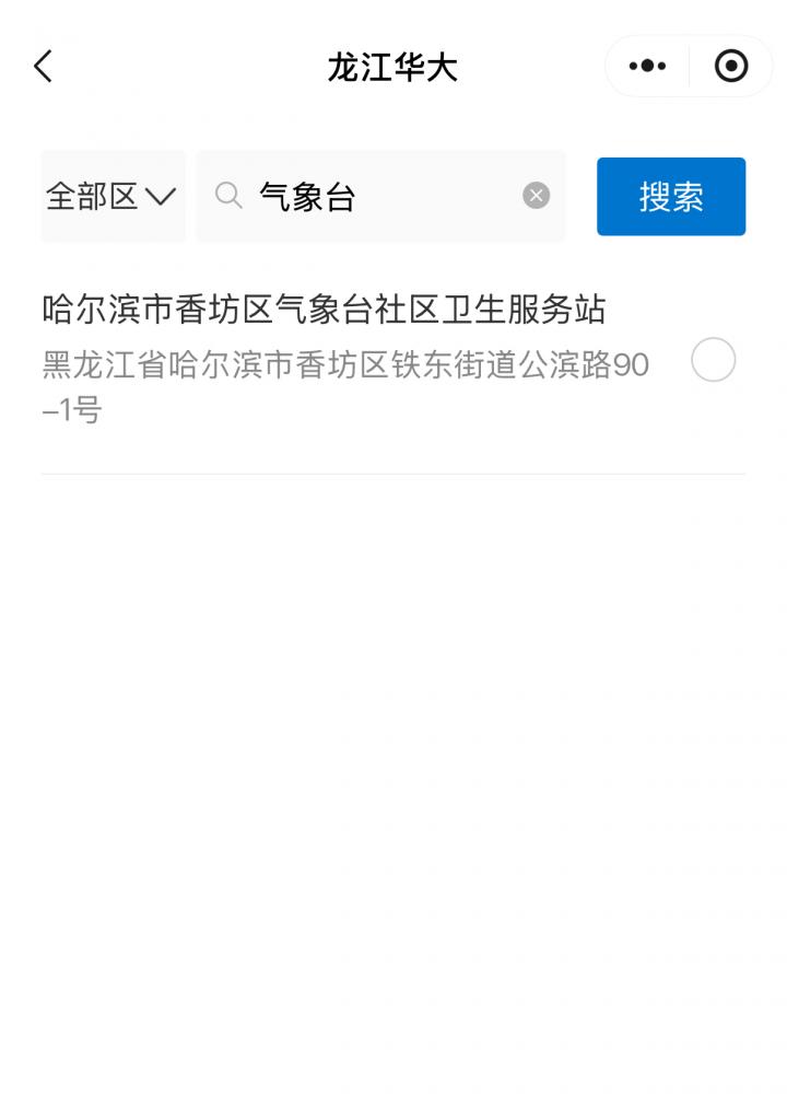 筛查点搜索气象台,选哈尔滨市香坊区气象台社区卫生服务站(这个一定不要填错)