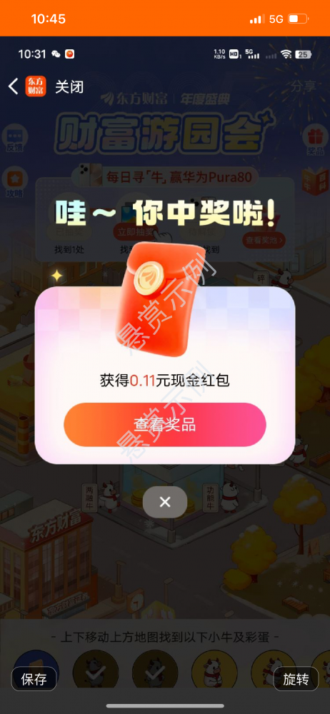 (抽奖以后回到主页,重新搜“财富游园会”再抽一次奖)