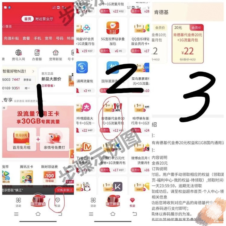 1——打开中国联通——点权益