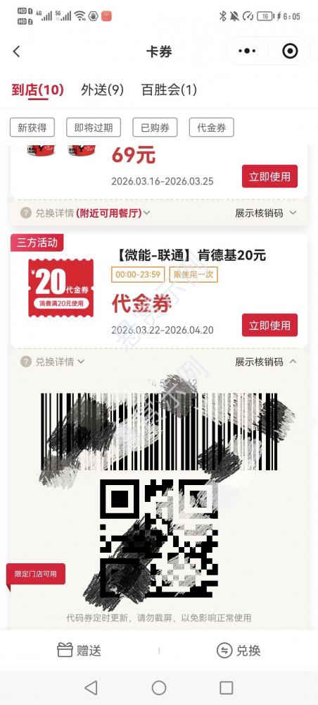 领取成功后去肯德基小程序截屏二维码