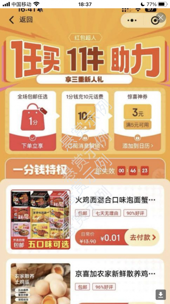扫进去显示新用户,在此页面任选一件商品支付0.01。没有的就是老用户请放弃(必须是此页面下单)