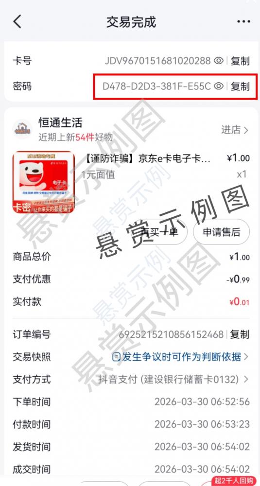 领取后抖音商城搜索京东e卡 购买20元京东e卡,购买成功截图,露出卡密,禁止自用,乱提交必举报